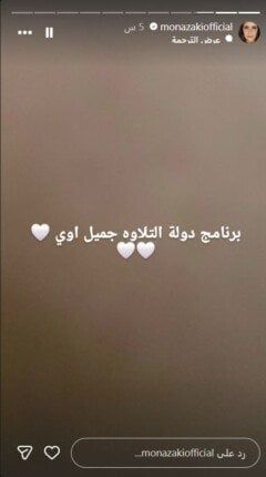 وشاركت منى زكي متابعيها بـ«إنستجرام» منشورا جاء فيه: «برنامج دولة التلاوة جميل أوي»، وذلك بعد تحقيقه نسبة مشاهدة عالية.