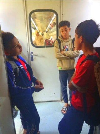 وبعد تلك الأسئلة السريعة، قطع كمسري القطار حديثي مع الأطفال الثلاثة، وطالب كل منهم دفع سعر التذكرة، قبل أن يتعاطف معاهم بابتسامة، عندما علم إنهم يلعبون في نادي تليفونات بني سويف، وعفاهم من دفع ثمن التذكرة.