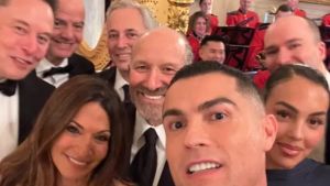 والتقط كريستيانو رونالدو الصورة التي ظهر فيها إيلون ماسك مالك "إكس" و"تسلا"، ورئيس الفيفا جياني إنفانتينو وزوجة رونالدو جورجينا رودريغيز، ووزير التجارة الأميركي هوارد لوتنيك، إلى جانب عدد من الشخصيات النافذة في الولايات المتحدة.