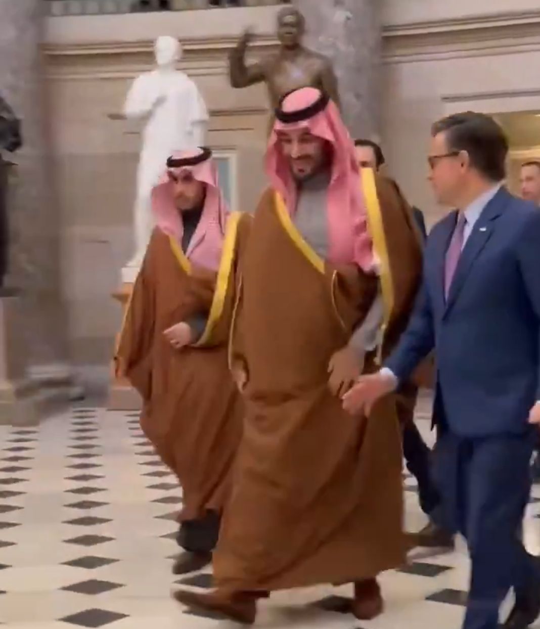 المصدر 7 - وصل ولي العهد السعودي الأمير محمد بن سلمان إلى مبنى الكونجرس، الأربعاء، حيث التقى برئيس مجلس النواب الأمريكي مايك جونسون وعدد من أعضاء الكونجرس، وجاءت هذه الزيارة على هامش جولته الدبلوماسية في واشنطن وبعد أن اختتم زيارته إلى البيت الأبيض.