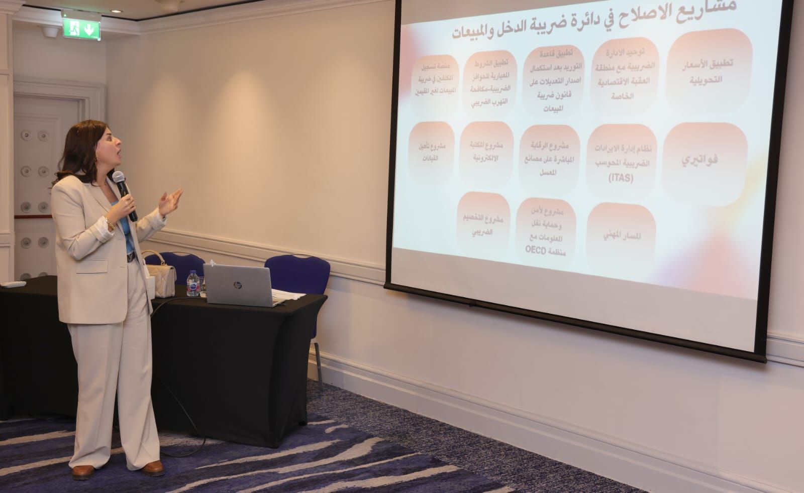 و تطبيق نظام "فواتيري" ونظام إدارة الإيرادات الضريبية المحوسب (ITAS). وتنفيذ مشاريع نوعية مثل الرقابة المباشرة على مصانع المعسل، المكتبة الإلكترونية، تأهيل القيادات والمسار المهني، ومشروع أمن وحماية نقل المعلومات بالتعاون مع منظمة OECD. ومشاريع التحول الرقمي كما تم استعراض جهود التحول الرقمي، ومنها: الرحلة الرقمية للمكلف من التسجيل إلى التسديد عبر الخدمات الإلكترونية. ونظام الفوترة الوطني الإلكتروني للتحول من الفاتورة الورقية إلى الإلكترونية. والرقابة الرقمية على مصانع السجائر. واستخدام الذكاء الاصطناعي في التدقيق الضريبي الإلكتروني. ومشروع التوقيع الإلكتروني ورقمنة الوثائق لتعزيز الكفاءة والموثوقية.