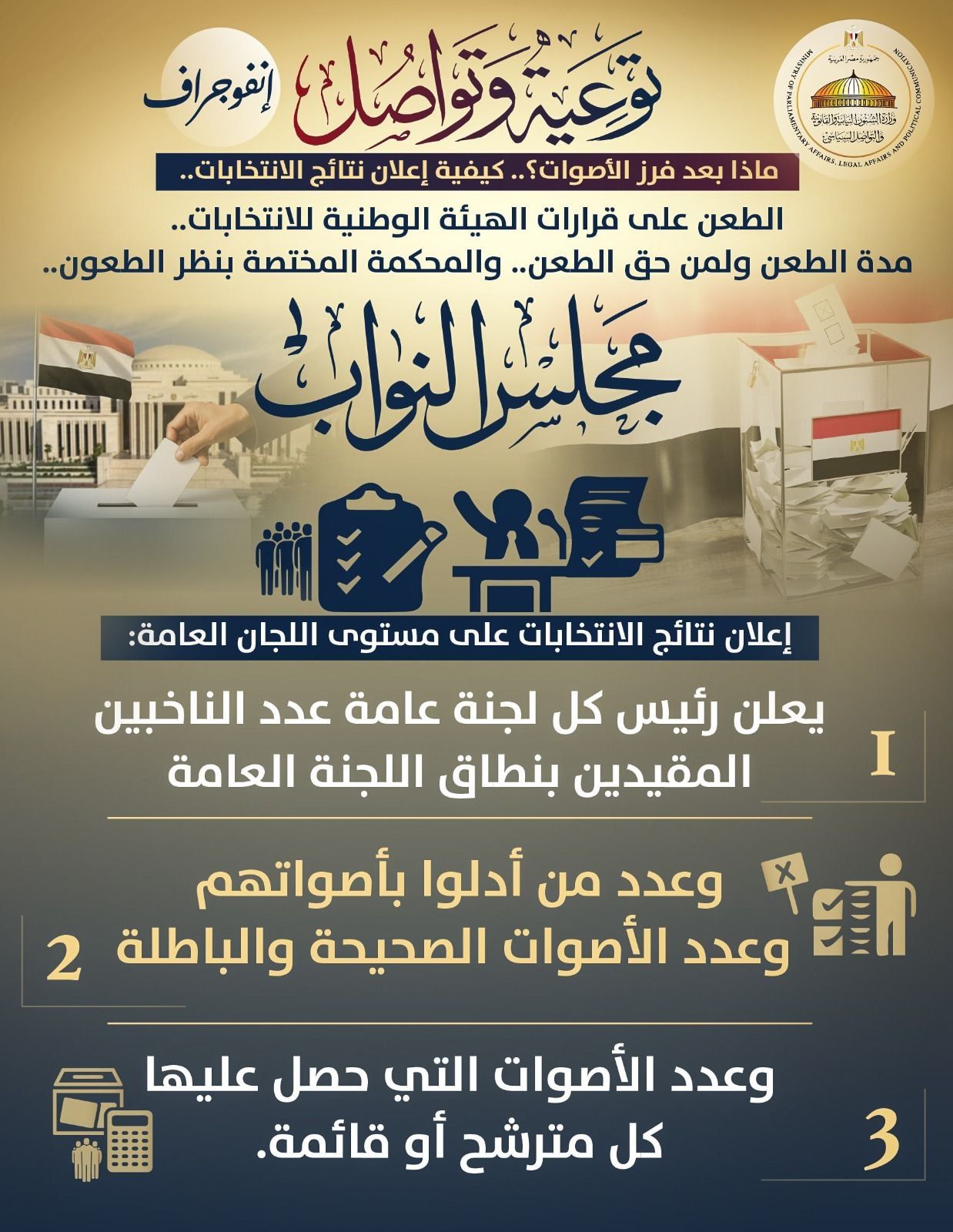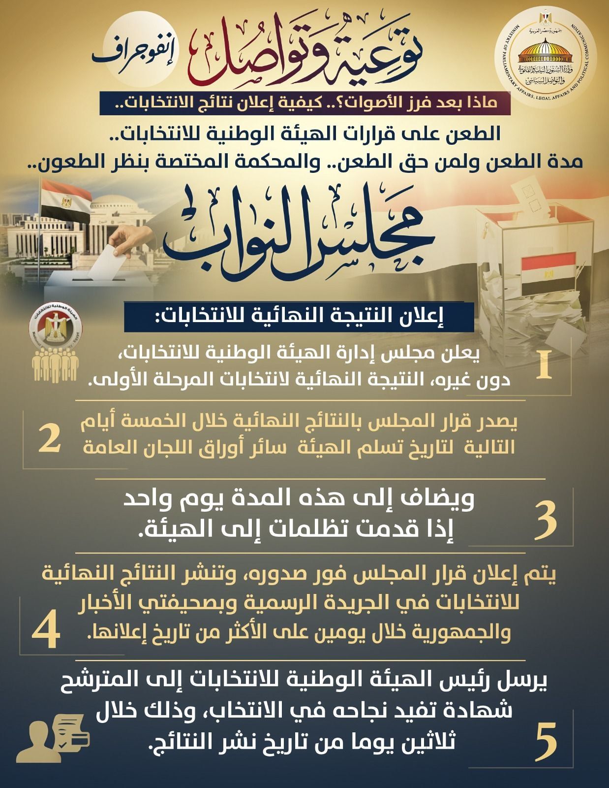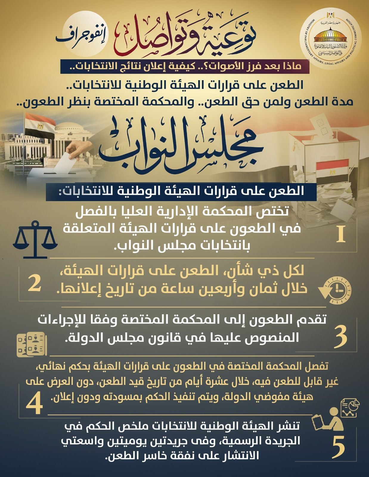 المصدر 7 - تهدف الوزارة من خلال هذه الإنفوجرافات إلى توضيح جميع الإجراءات والحقوق المتعلقة بالمرحلة التي تلي فرز الأصوات في الانتخابات، وتشمل: