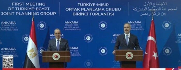 أكد الدكتور بدر عبد العاطي، وزير الخارجية، على أهمية تنفيذ حل الدولتين وإقامة دولة فلسطينية مستقلة، مشيرًا إلى أنه تم الاتفاق مع الجانب التركي على أهمية العمل المشترك لتنفيذ بنود اتفاق شرم الشيخ للسلام، متابعًا: «نعمل على تثبيت وقف إطلاق النار في غزة».