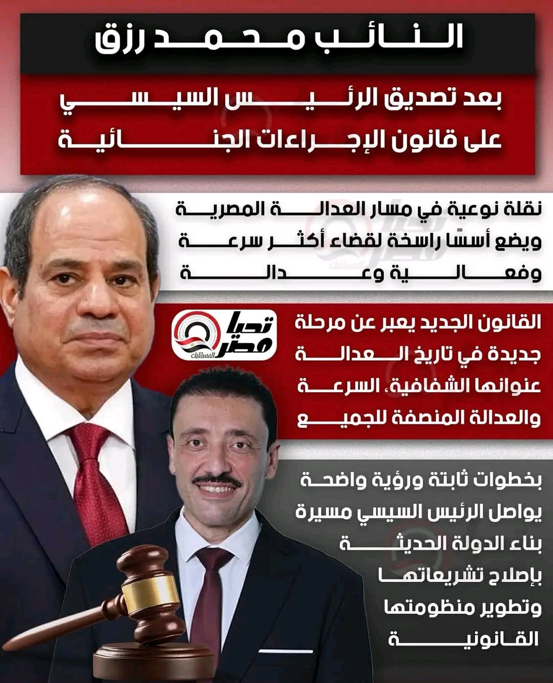 المصدر 7 - النائب محمد رزق بعد تصديق الرئيس السيسي على قانون الإجراءات الجنائية