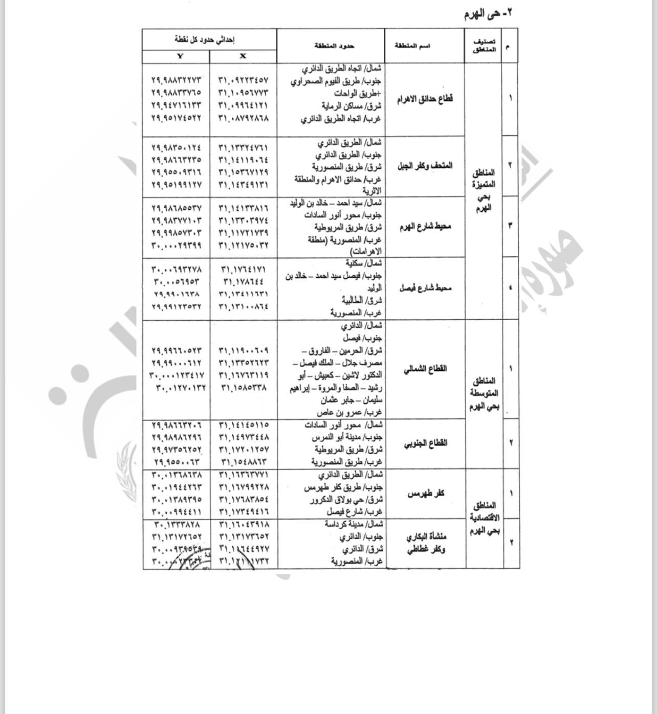 وفيما يلي قائمة حصر وتقسيم المناطق في حي الهرم: