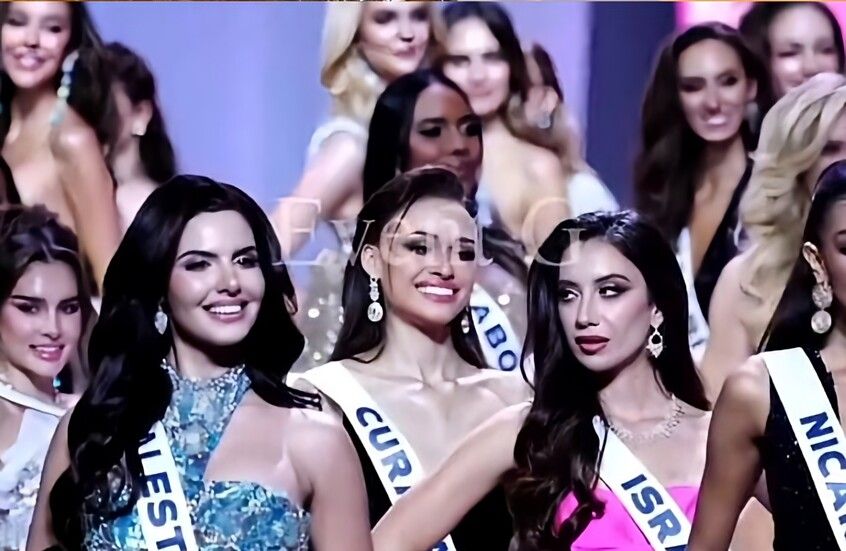 أثارت لحظة وقوف ملكة جمال إسرائيل، ميلاني شيراز، بجانب ملكة جمال فلسطين، نادين أيوب، على منصة مسابقة ملكة جمال الكون في تايلاند عاصفة من الجدل على الإنترنت.