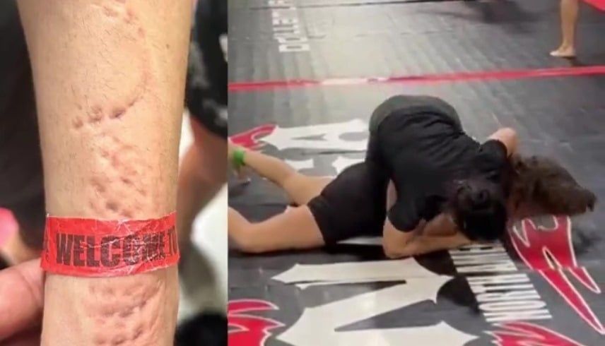 واكتشفت اللاعبة بعد انتهاء التثبيت على الأرض وجود علامات عض عميقة على ساعدها، وأظهرت الصور التي شاركتها على وسائل التواصل الاجتماعي مدى قوة الإصابة.