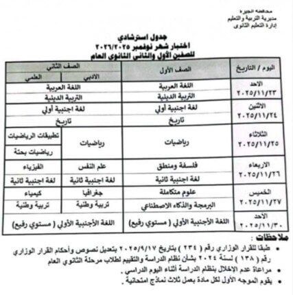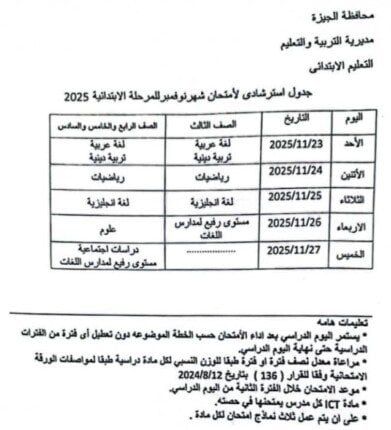 جدول امتحانات شهر نوفمبر 2025 في الجيزة لجميع المراحل