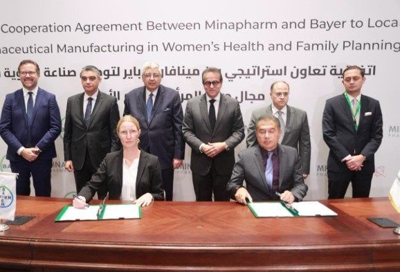 شهد الدكتور خالد عبد الغفار، نائب رئيس مجلس الوزراء للتنمية البشرية ووزير الصحة والسكان، توقيع اتفاقية تعاون بين شركتي «مينا فارم» و«باير» الألمانية لتوطين صناعة الأدوية في مجال صحة المرأة والصحة الإنجابية.